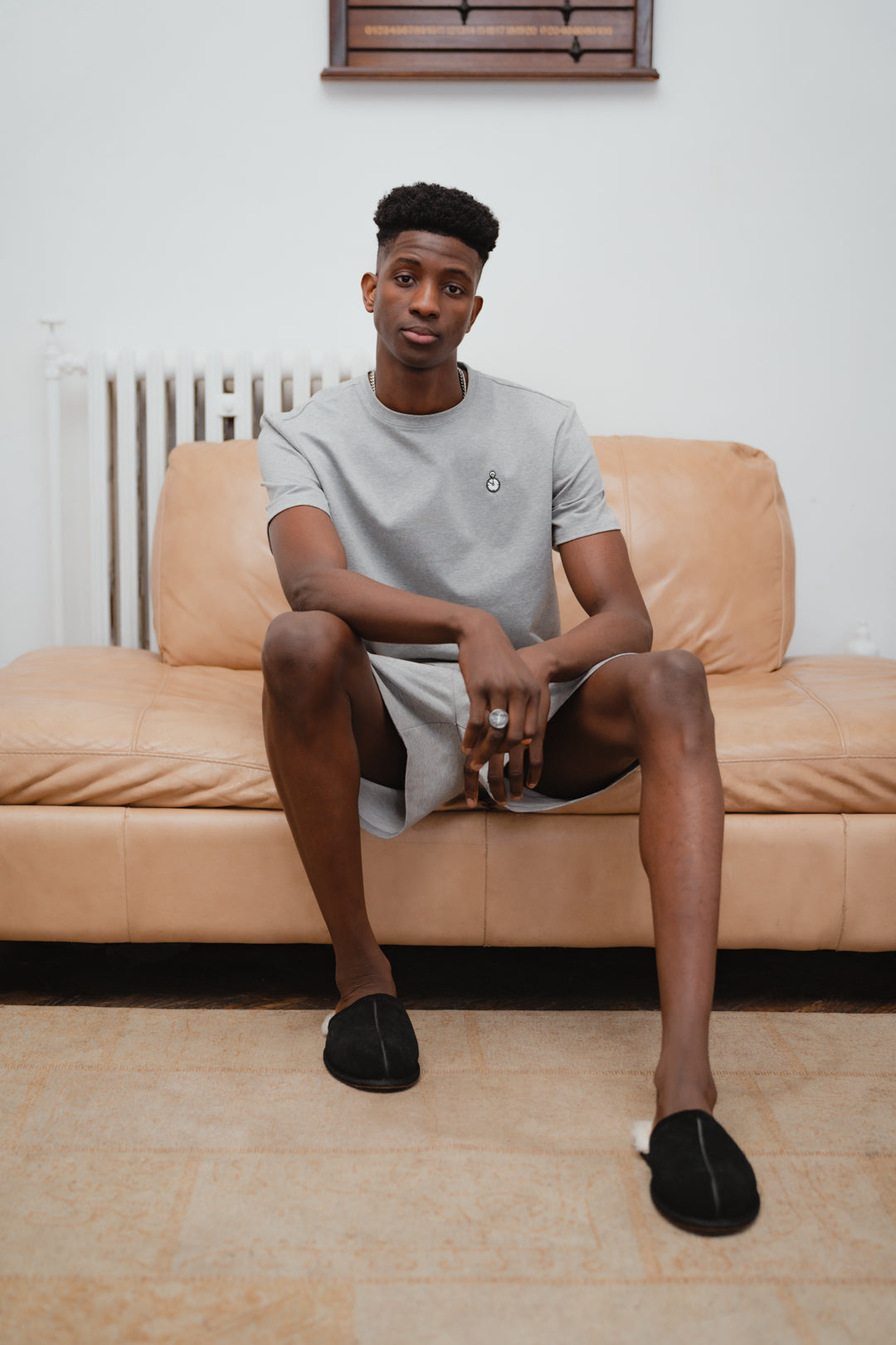 Jet Black Short Sleeved Top with Long Flannel Bottoms Sleepwear